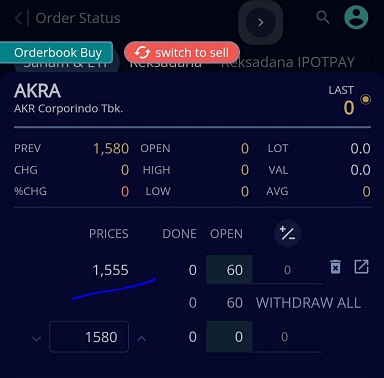 Hari ini gue mengharapkan bisa buyback AKRA di 1.555
