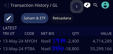 Buyback lebih tinggi dari buyback sebelumnya di 1.645 adalah karena pada hari yang sama gue ada melakukan sort di PTBA & MYOH