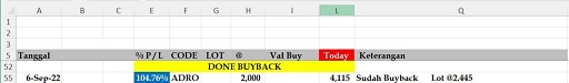 Dan dengan uang hasil jualan AADI gue harapkan saat itu ADRO sudah ada di harga 1.900 dan gue akan buyback sebanyak 80 Lot