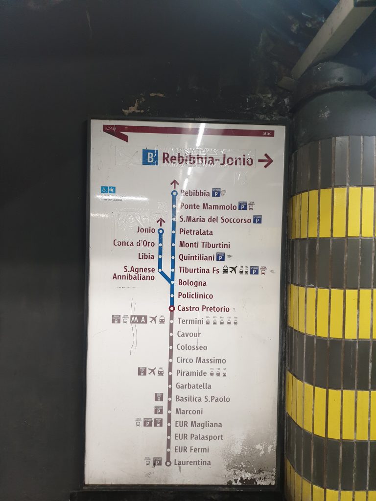 Metro kota Roma dibagi menjadi 2 jalur besar, yaitu jalur Biru dan jalur merah. Kedua jalur tersebut bertemu di Stasiun Roma Termini, jadi kalau mau pindah jalur, di Roma Termini lah pindah jalurnya.