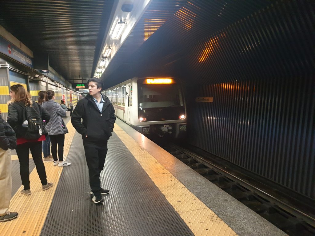 Jujur aja gue agak kaget awalnya, soalnya suasananya agak agak serem hihihi…. uda turun dalam kebawah tanah, suasanya sepi , agak gelap dan tembok nya penuh coret2an, demikian juga dengan keretanya. Mirip kayak di film film deh pokoknya. hehehe…