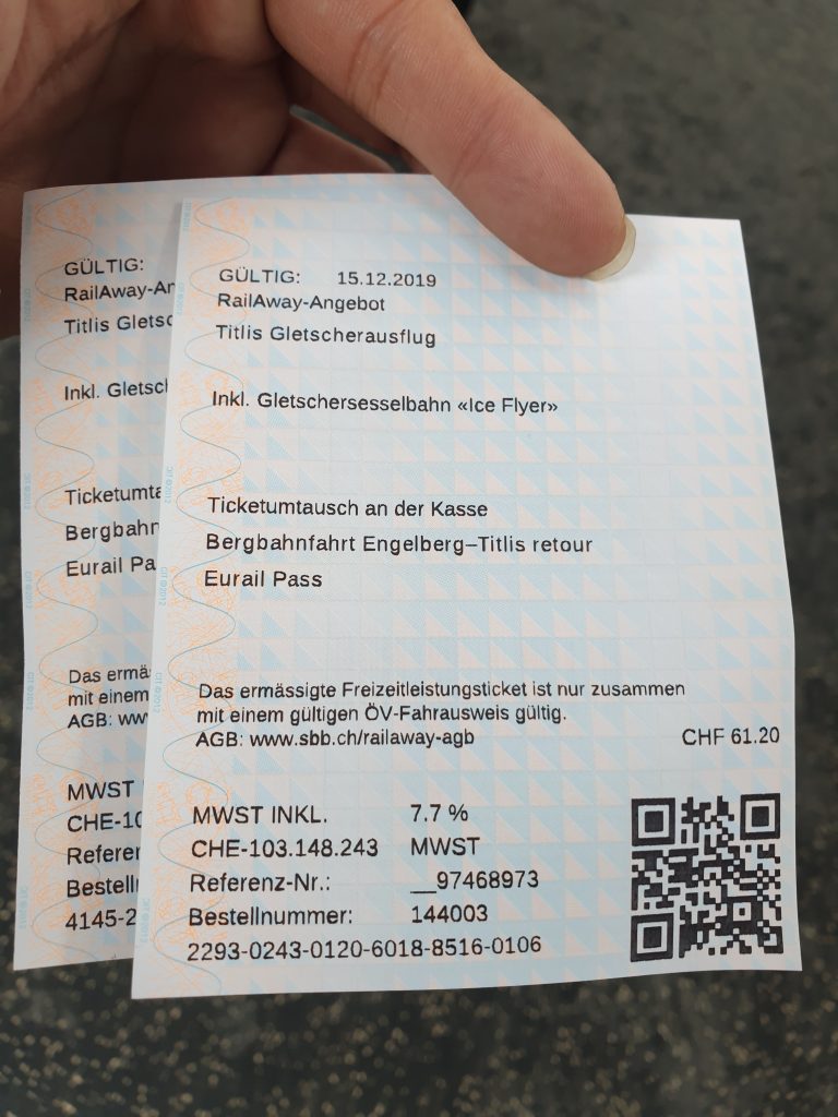 Tiket masuk yang sudah dibeli dari Stasiun Luzern
