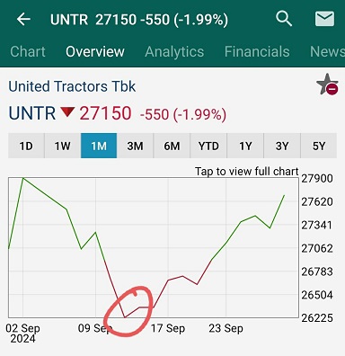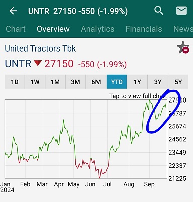 Pengumuman dividen UNTR pada jumat 27 September kemarin sebesar 670 Rupiah