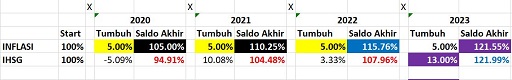 JIKA Tahun 2023 IHSG mengejar kenaikan setara inflasi tahun 2020 sampai 2023