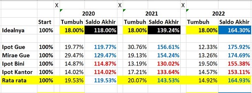 18% yang di capai, juga bukan terjadi secara konstan di setiap portofolio