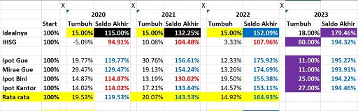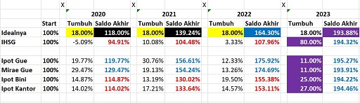 Ipot & Mirae gue tahun 2023 nanti cukup naik 11% sudah setara pertumbuhan 18% pertahun (CAGR) selama 4 tahun berturut turut