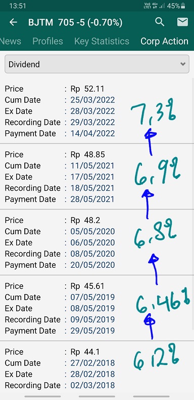 itu artinya tingkat pertumbuhan nya sudah setara 15% per tahun selama 5 tahun (5% nya dari dividen)